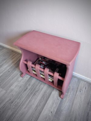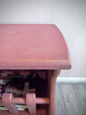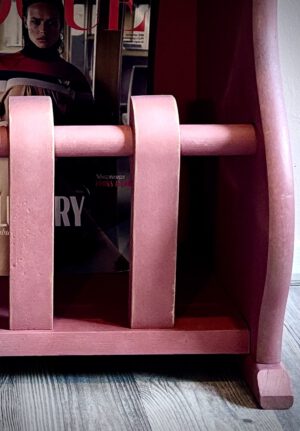 Om het klassieke ontwerp een zachtere en minder traditionele look te geven, is een blend van zalmroze en lichtroze aangebracht. De afwerking met kleurloze meubelwas zorgt voor een subtiele diepte, terwijl donkere meubelwas op de randen en hoeken een doorleefd karakter toevoegt. Voor een vleugje elegantie is de krantenbak subtiel verfraaid met goudverf – precies genoeg om luxe en verfijning uit te stralen zonder zijn authentieke charme te verliezen. Naast kranten is deze bak ook natuurlijk ook perfect voor het stijlvol opbergen en presenteren van magazines en/ of boeken. Een tijdloos meubelstuk dat nostalgie en elegantie moeiteloos combineert!